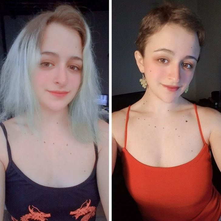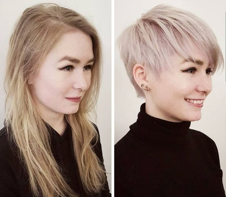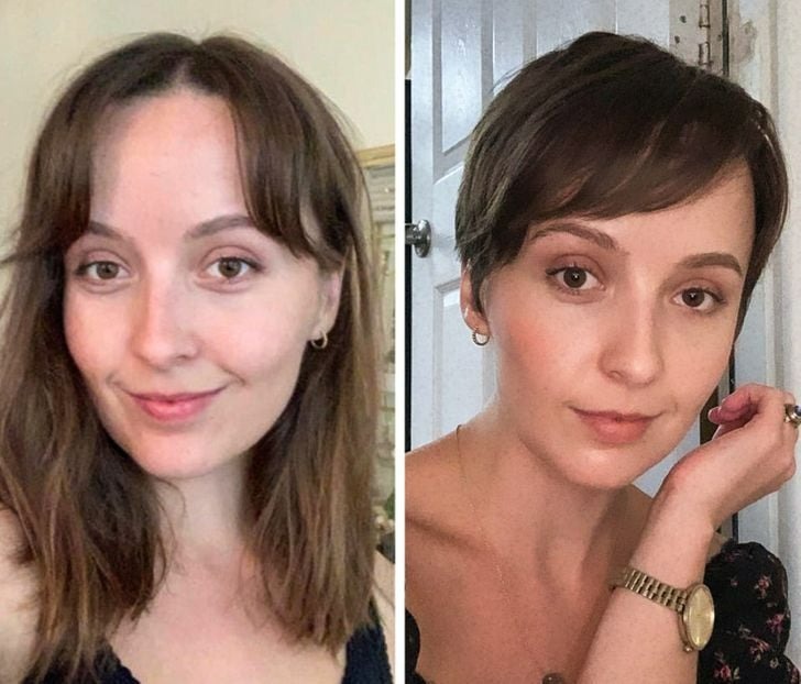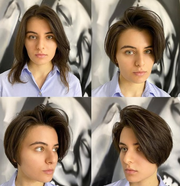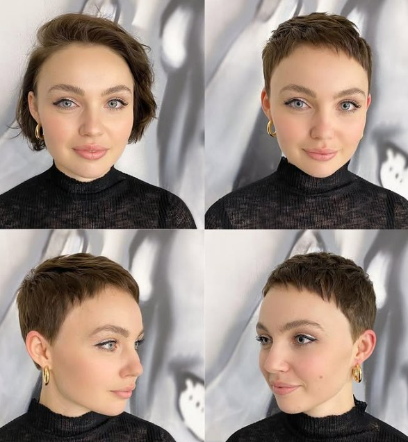She’s absolutely owning her new hairstyle—posing like a model, and honestly, she looks like one too. Her fresh cut is the perfect choice for anyone wanting to go short without going too short.